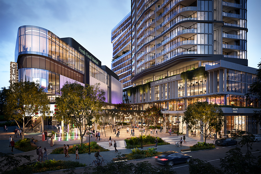 Once completed, the 9,000m2 site will offer 150 residential apartments, approximately 30 retail shops and a large office tower, as well as a fresh food market, an elevated outdoor dining precinct, cinemas, and services such as a fitness/wellness centre, medical centre and childcare facilities.