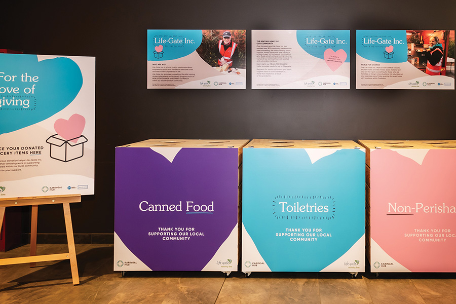Karingal Hub’s ongoing partnership with Life-Gate Frankston provides a destination for customers to give back to those most in need locally. Life-Gate supports the most vulnerable members of the community whom are dealing with mental health issues, homelessness and hardship. More than 20,000 non-perishable food and personal care items have been donated by the centre and customers to date, providing an example of the community rallying and working together to achieve a common goal of making a significant difference and contribution to thousands of local families’ lives.