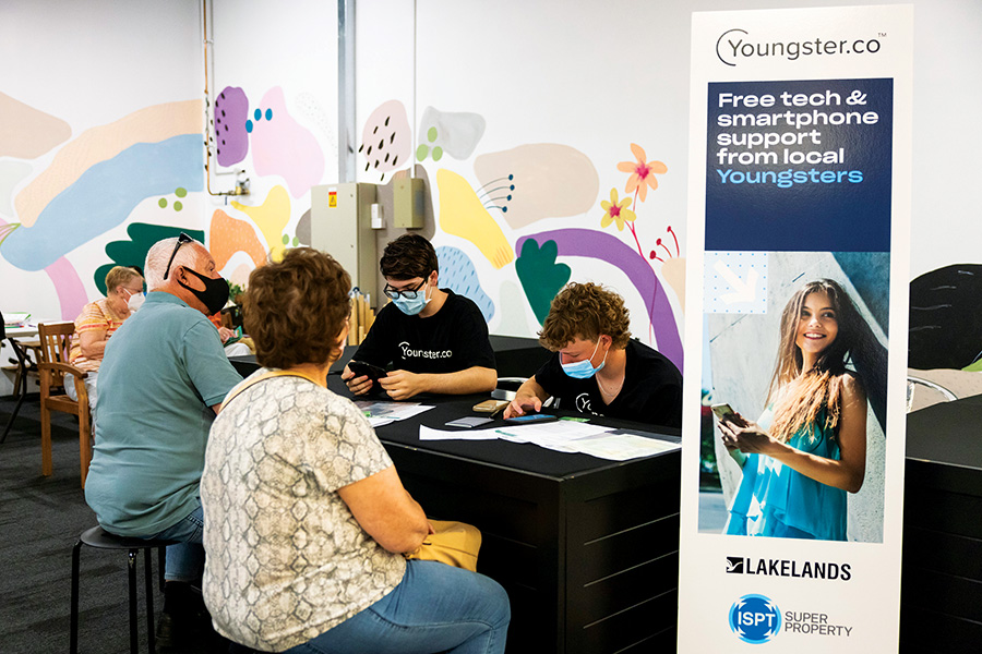 Youngster.co is an inter-generational community program underpinned by ISPT’s commitment to ESG excellence. Our properties are most meaningful when they connect their communities and this was even more evident during the COVID-19 pandemic. After community consultation, we identified a major skills gap for seniors within our centre communities, whom are challenged by smart phone technology, which in turn contributed to feelings of isolation. Many seniors struggled with state government requirements for apps to check in and link vaccination certificates. This was impacting their ability to participate in the simplest of everyday activities such as food shopping and accessing essential services such as health care and appointments, as services and products were increasingly migrating online. Many seniors were left feeling overwhelmed and frustrated and suffering from isolation and loneliness.