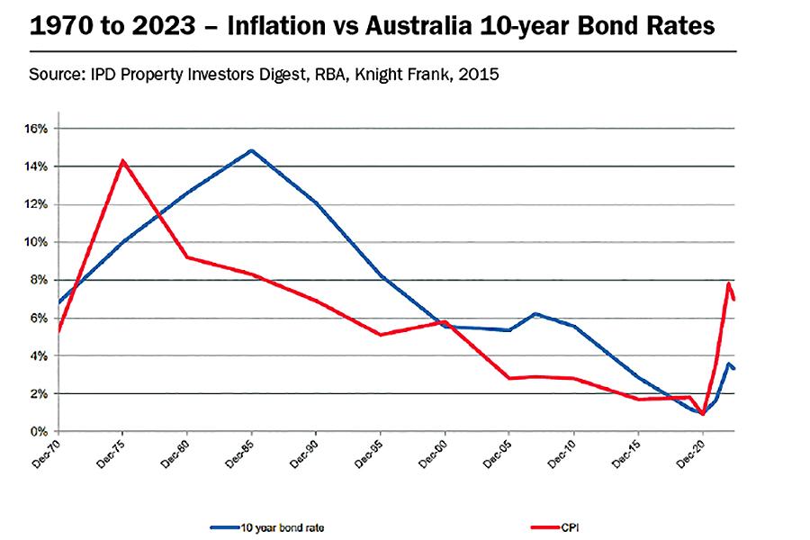 Inflation that has driven up cash rates, bonds and property cap rates – savagely in some cases – is now peaking globally – we hope. So what does this mean for bonds, and therefore interest rates, retail spending and property yields that drive capital values (along with income – let’s not forget about that)?