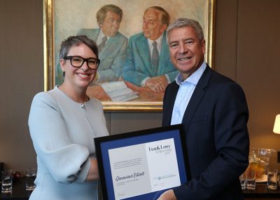 The Fellowship was established in recognition of the contribution made by Sir Frank Lowy AC to the Australian shopping centre industry and launched in 2016 when Mr Lowy stepped down as Chairman of Scentre Group. The Fellowship is sponsored by Scentre Group and is awarded annually to a talented person who has demonstrated distinction in their professional field and a commitment to shopping centre industry excellence.