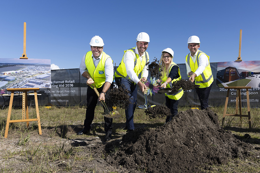 Construction has officially commenced at Aura’s large format retail precinct — Aura Home + Life — redefining shopping and lifestyle options in the area with the announcement of top-tier tenants Spotlight, Anaconda and Harris Scarfe.