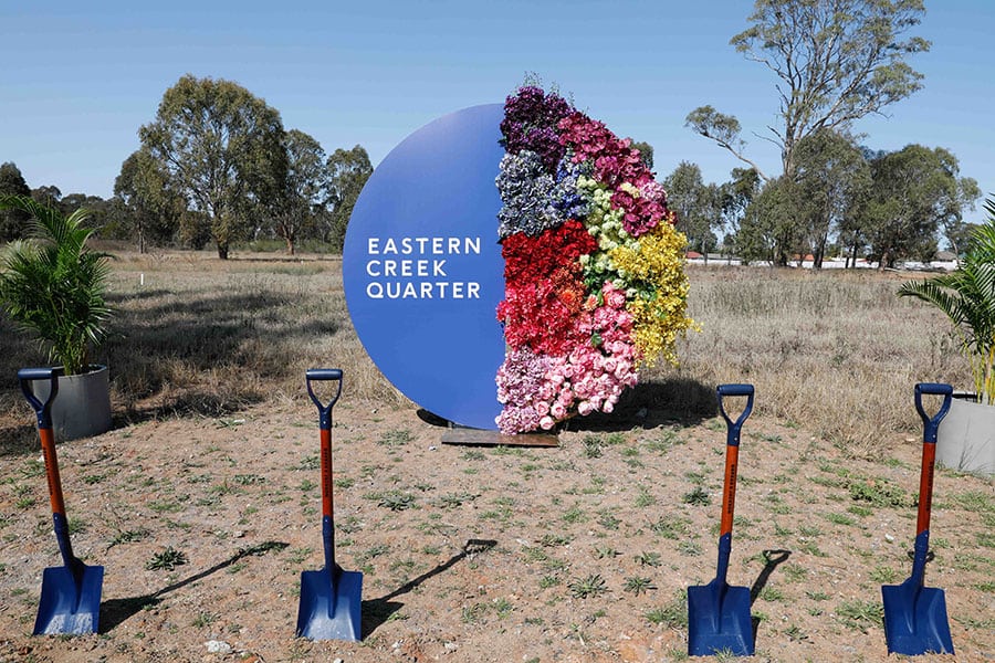 The first sod was turned on western Sydney’s newest shopping destination- Eastern Creek Quarter. Construction of the first stage of Eastern Creek Quarter kicked off today, with the first sod turned on a Woolworths-anchored shopping centre set to bring new levels of convenience to the western Sydney community.