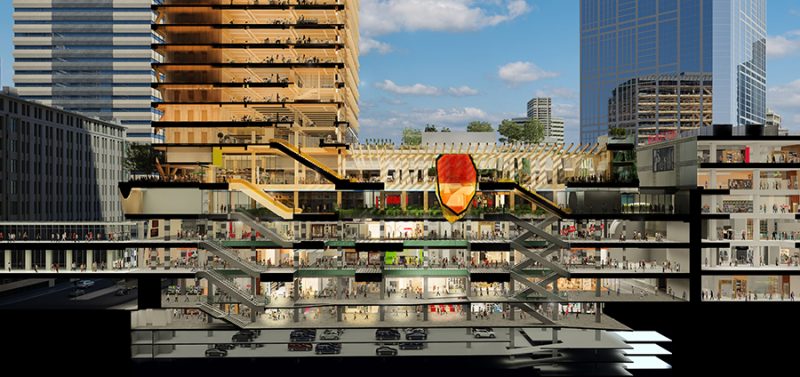 Its full designs will be unveiled in the coming months but the new look will involve the addition of two new retail levels that transition to the new timber office tower’s skylobby and surrounding rooftop.