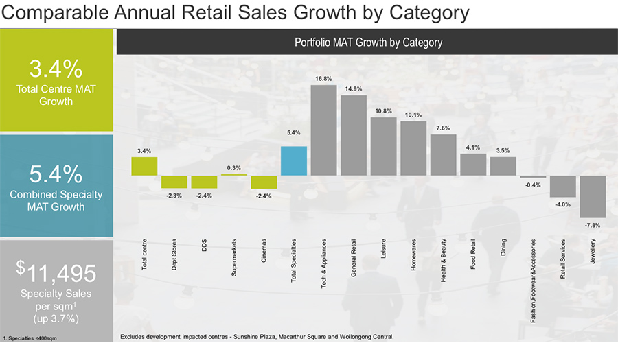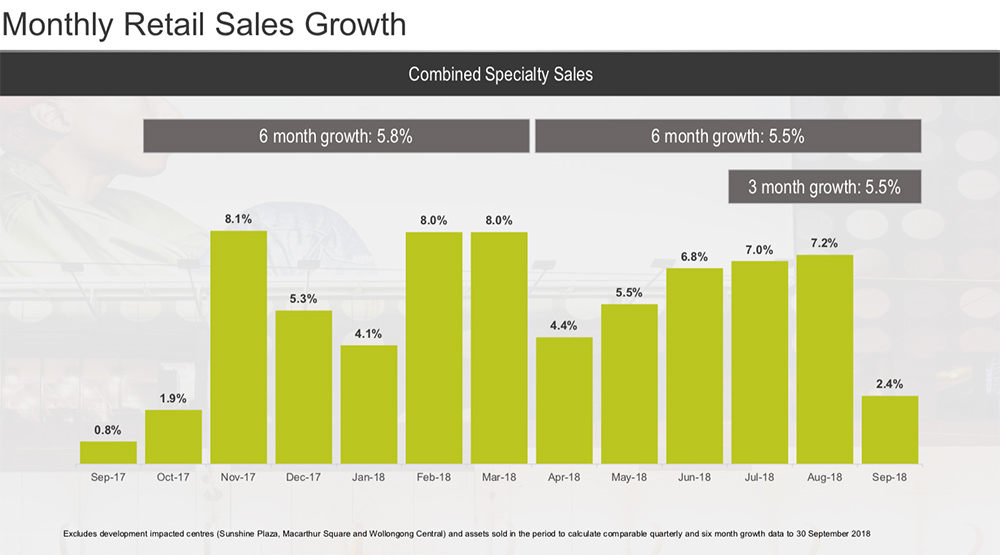 • Retail specialty sales of $11,495 per square metre (psqm) at 30 September ($11,404 psqm at 30 June 2018)