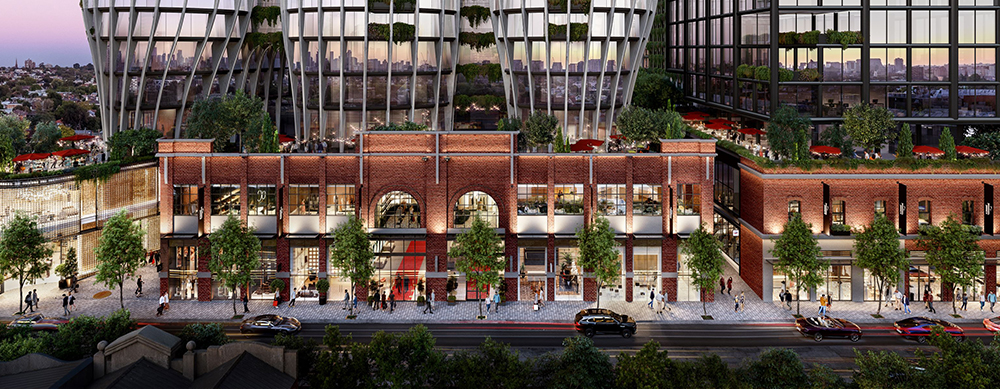 - Restoration of the heritage façade along Chapel Street and reconstruction of the heritage chimney acting as a centrepiece of the central piazza