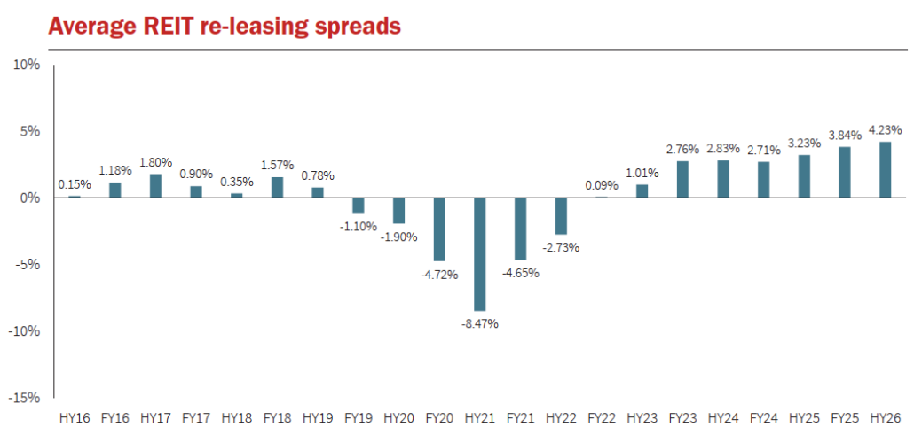 The resurgence of Big Gun trading is underpinned by three consecutive years of strengthening fundamentals that have shifted investor sentiment. Re-leasing spreads have emerged as a particularly compelling indicator, averaging more than 3.84 per cent across major REITs in 2025, the highest level on record and representing the third consecutive financial year of positive re-leasing spreads. This performance has been complemented by significant compression of vacancy rates, which fell from 4 per cent in 2020 to just 2 per cent in 2025*, while population growth remains robust at 1.5 per cent annually as new retail supply declines.