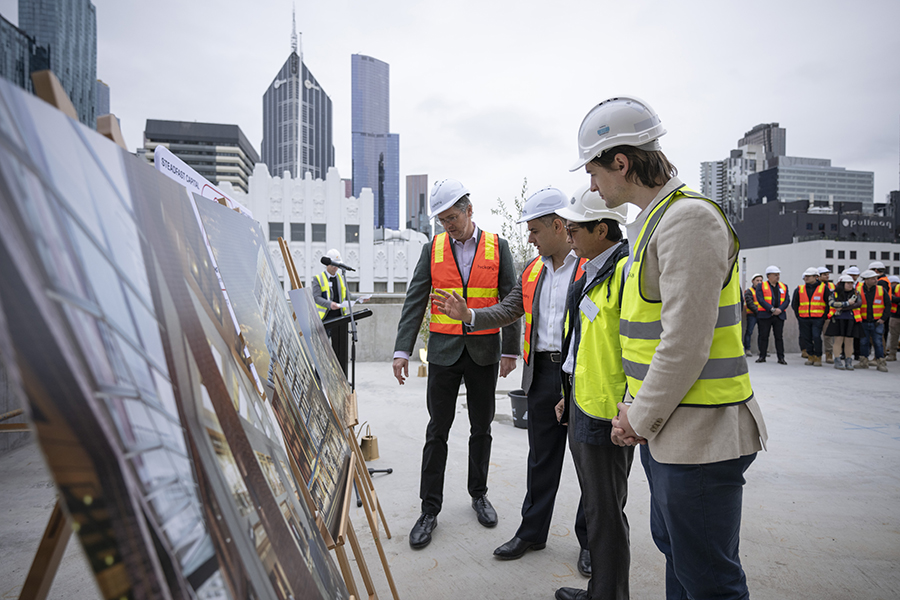 The project topped out in September 2024, which was commemorated with a ceremony attended by Lord Mayor Nicholas Reece, along with project stakeholders Hickory Group and Buchan. Completion of Melbourne Walk is anticipated for the first half of 2025.