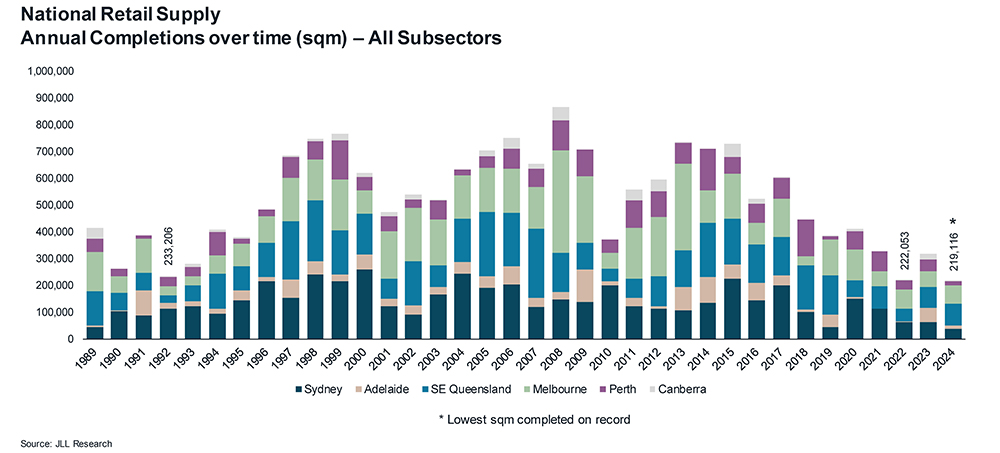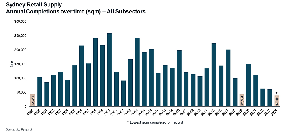 “Exacerbating this is the sheer lack of new built form retail. In Sydney, only 39,200m2 of retail was developed in 2024, the lowest level since 1989. Our analysis across the sub-sectors is that economic rents would have to grow between 20% and 40%, dependant on the asset class, to support new feasible retail development to meet the burgeoning population growth,” said Hatcher.