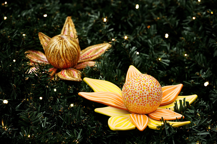 Furthermore, the tree is adorned with 45 beautifully hand-painted flannel flowers by Jude Jarrett and Jeffrey Samuels. which can be seen from the first and second levels.