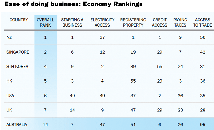 The ARA recently submitted to the House of Representatives’ Inquiry on Impediments to Business Investment. When researching business investment across the globe, we looked straight to the World Bank and its ‘Doing Business’ series. ‘Doing Business’ assesses 190 countries across the world for their ease of doing business.