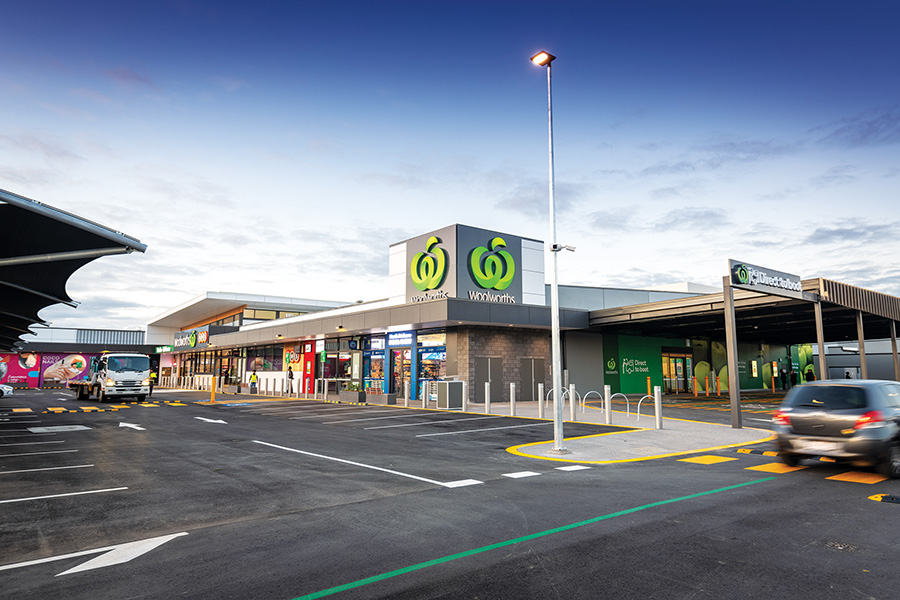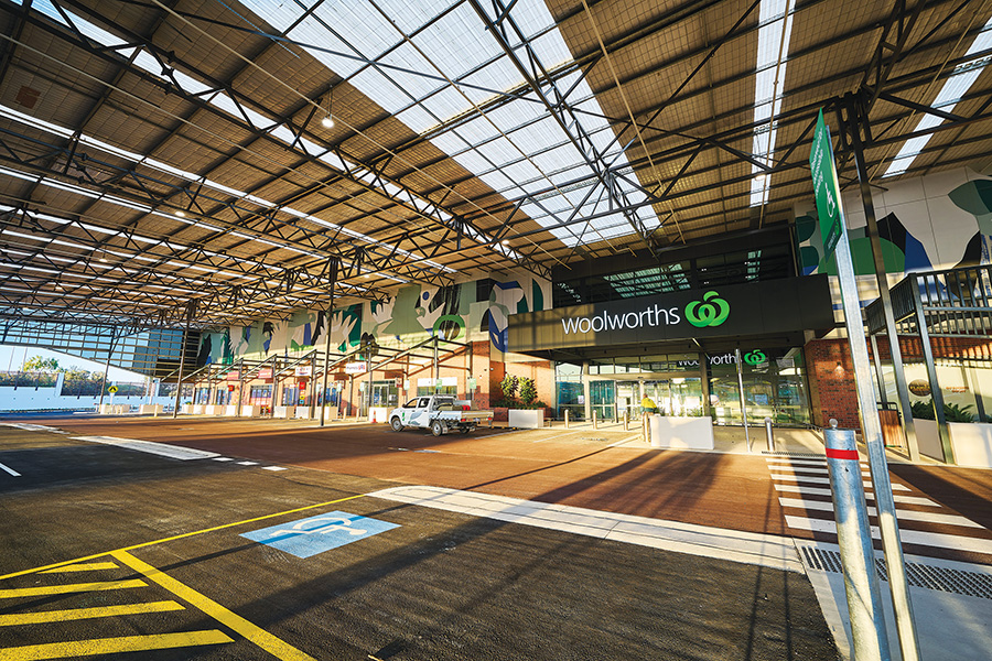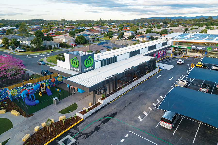 But of course, alongside the company’s renewed focus on the e-commerce aspects, Woolworths Property continues with its traditional function of developing stores and centres. Leppington Village in Sydney’s south-west is the latest addition. Construction began in 2021 on the 8,000m2 centre, which features a full-line Woolworths with Direct to Boot pick-up facilities. The centre features 27 specialties including a medical centre, pharmacy, 24/7 gym, services, restaurants and cafes. It’s a 5-Star Green Star development with some 650 solar panels on the roof generating more than 400-megawatt hours of electricity each year.