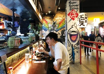 The precinct is closed off from the outside world and wrapped up in a street art backdrop. Of course anyone can venture inside (it is more like being transported into a Tokyo laneway scene). Here you will find Japanese cheesecakes, Korean shaved-ice sherbet, flaming cocktails in tiki heads, matcha latte bowls and puffer-fish ice-cream.