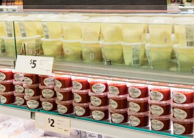 A major section of organic food is available, as well as dedicated vegetarian and vegan sections. A partnership with a local, iconic quality butcher, Meatsmith, has been formed and the brand is featured in the store. The fish section stocks only 100% Australian produce and all eggs are free range. Brunetti’s, another iconic Melbourne café and bakery supplies pastries and, again, its brand name is featured. Honey biodynamically farmed in local backyards – remember, we’re in the middle of suburbia here – is on the shelf next to the Vegemite.