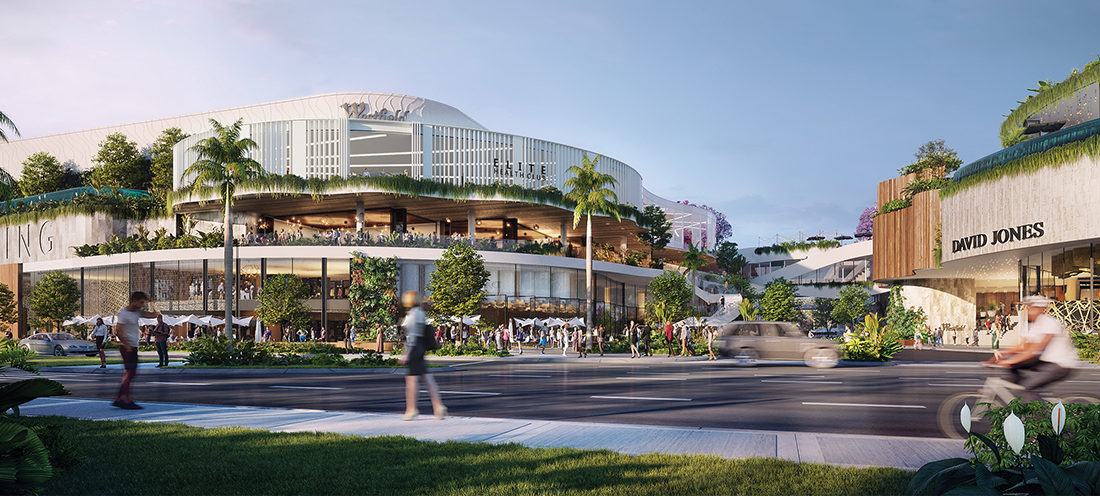 It’s partly open-air and is richly landscaped, incorporating water features conforming to the ‘resort’ atmosphere and ambience that is now a signature of the Scentre Group’s design philosophy for its new centres.