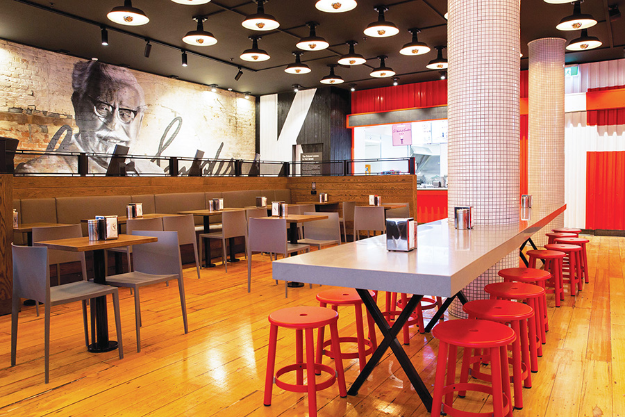 Similarly, Fort St in Auckland’s CBD outpost resembles more a fast-casual restaurant than your typical Colonel Saunders’ joint. Warm timber, black industrial metal, concrete and highlights of the KFC red brand colour combined with hyper modern graphics create an enticing environment that blends into its urban, central city location.
