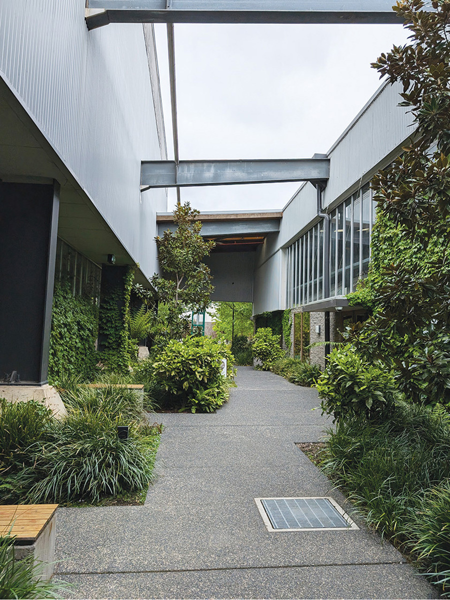 Skyfields by Perth Airport’s team and I also visited projects closer to home, including Molonglo’s Dairy Street industrial redevelopment near Canberra Airport, which is another positive example. On the edge of a wetland habitat, it repurposes existing 1960s industrial warehouses into a commercial offering that balances art and industry. The native landscaping and quality design offer are key drawcards for the 40 businesses that now call it home, creating a neighbourhood that embraces the authenticity of the past. This is in a similar vein to the Commonwealth Bank of Australia headquarters in South Eveleigh, Sydney, which transforms old railroad buildings into a high-tech building of eight storeys for 4,000 employees.