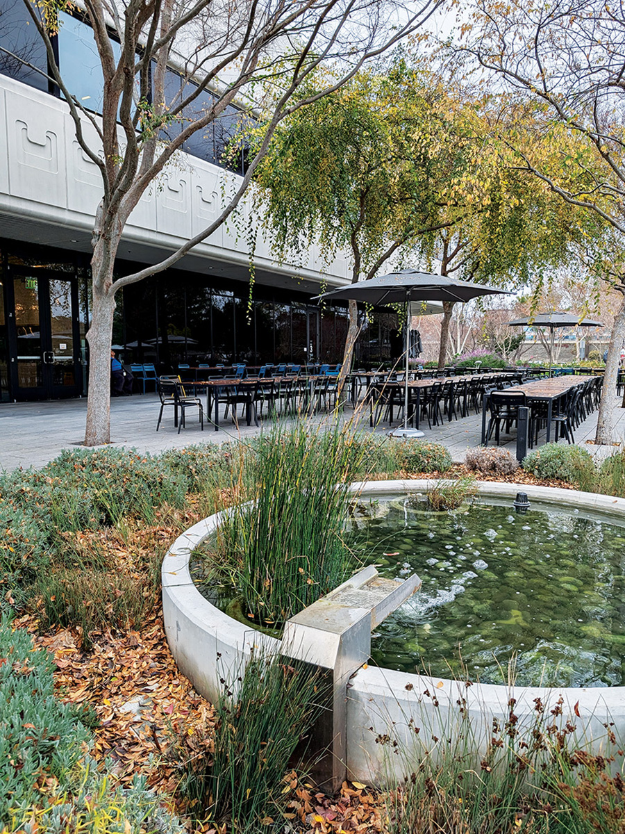 In the US, the LinkedIn campus in Silicon Valley hits all the right design notes too. With elements of adaptive reuse (existing buildings were renovated and upgraded but remain lower in height), landscape brought back onto the site (much of the campus is dominated by landscape, wetlands and biofiltration) and flexibility (food trucks, adaptive cafe and other temporary features), the impact is greater connectivity, access and activating campus life. For example, the outdoor barbecue pods pack up or fold out easily for team members and their families to use, welcoming the broader community into LinkedIn’s outdoor spaces.