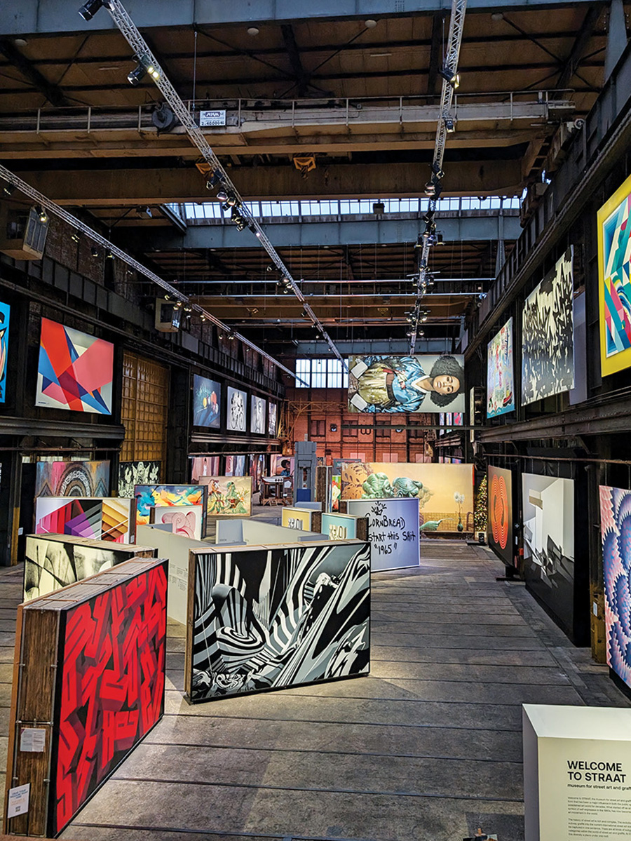 In northwest Amsterdam, the STRAAT (Street Art) Museum is impressively located on one of the city’s largest shipyard wharf sites on the banks of the River IJ. A warehouse converted into a cultural arts and creative destination, it features 180 works, a grand museum space, a cafe, a kids’ workshop space, amenities and a shop – all incredibly well thought out, low-cost and flexible, including an amenities pod that can be changed to suit functionality. It’s an excellent use of celebrating the past heritage architecture, enhancing the authenticity of what’s already on the site, while enabling the new additions and modern artwork to shine.