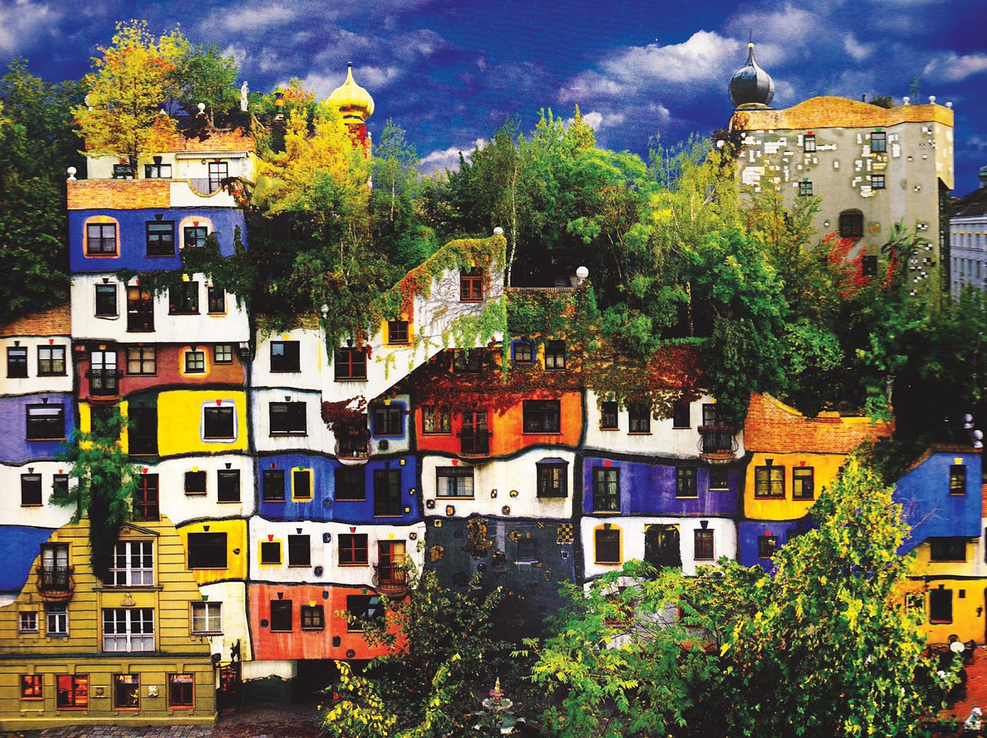 In the 90s, architect and artist Friedensreich Hundertwasser designed two mixed-use developments whose philosophy was incorporating landscape into his work. This architectural style is not unlike that of Spain’s Gaudi, with its sensuous curves, even with trees literally growing inside the building and out of windows. The Hundertwasser House in Vienna and Waldspirale in Damstadt Germany both have green landscaped roofs.