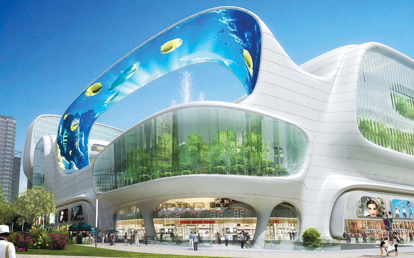 Lead architect Moshe Safdie, who also designed Singapore’s Marina Bay Sands development, has conjured up an iconic building, a cutting-edge dome under which is a marketplace of retail and 22,000m2 of lush landscaped gardens.
