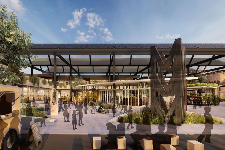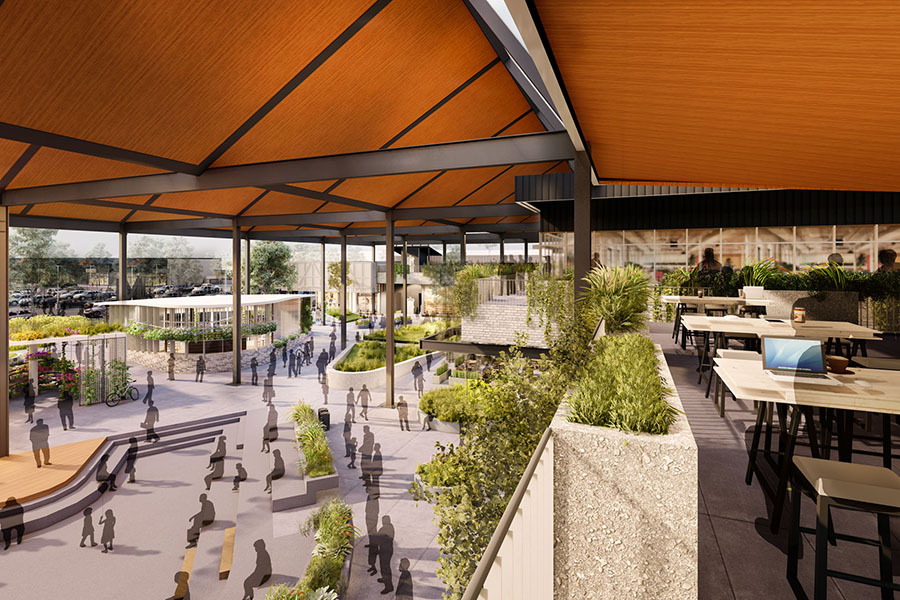 “The sweeping saw-tooth roof that covers the piazza is a nod to the agricultural sheds that are part of the suburb’s heritage and provides passive ventilation,” Withers said.