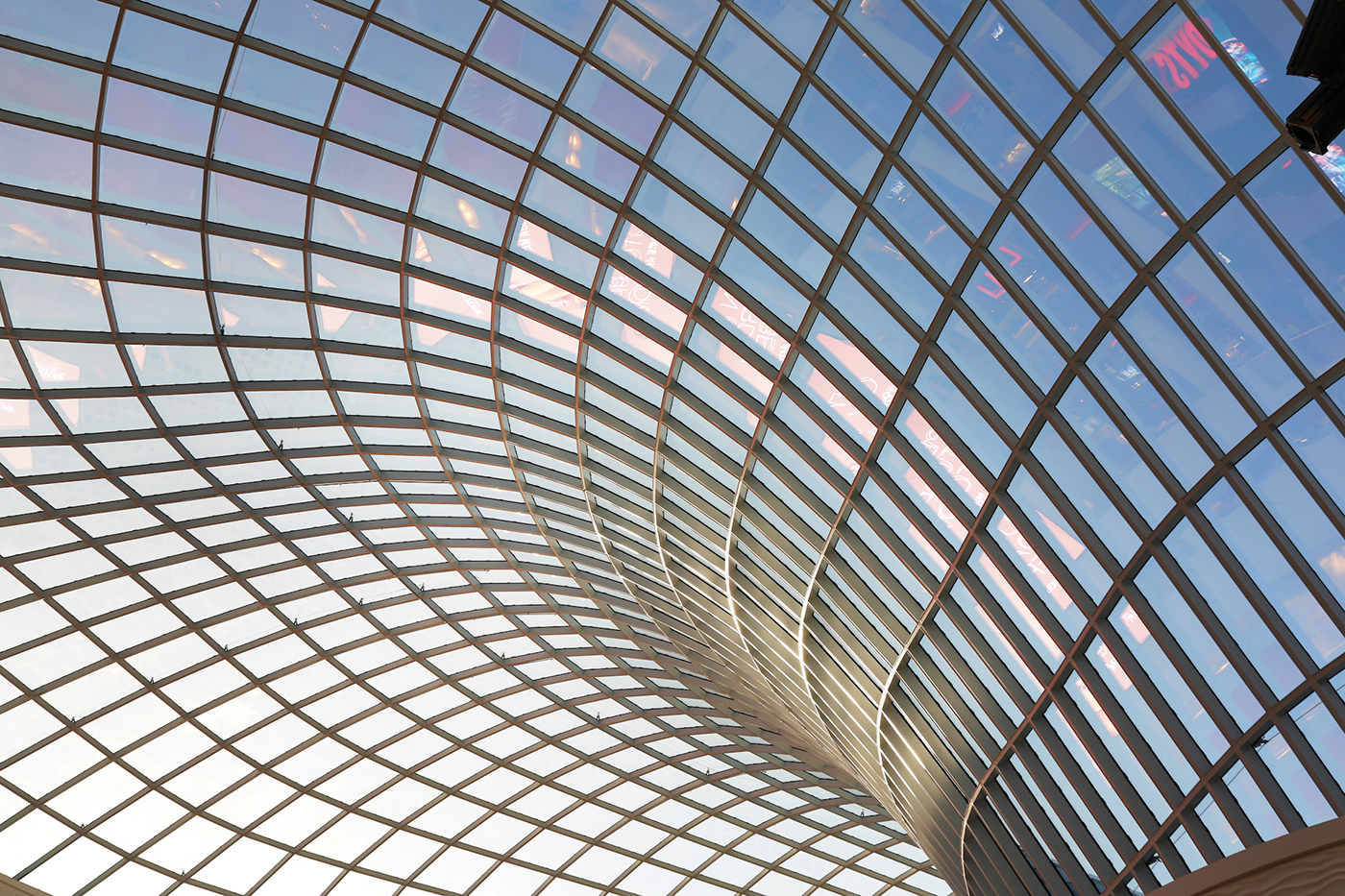 A striking 7000m2 grid-shell roof presents a milestone in structural design innovation as it arches over the atrium, soaring some 30 metres above the ground.