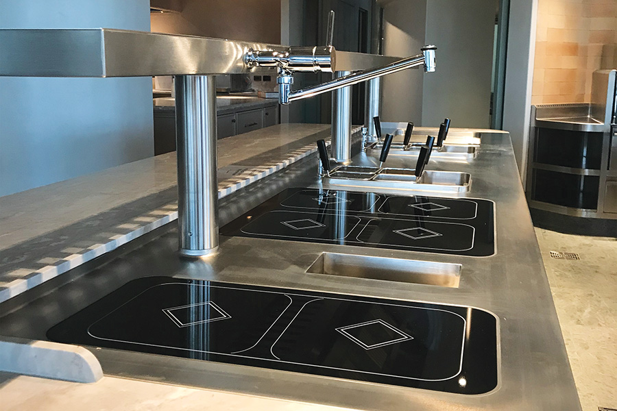 Induction cooking creates less heat in the kitchen than gas-powered cooking, so there are savings to be made in air conditioning costs. It creates better working conditions in the kitchen. We have also proved in our work that most F&B outlets can save at least 30% on their energy costs by selecting better equipment and materials during the schematic design phase.
