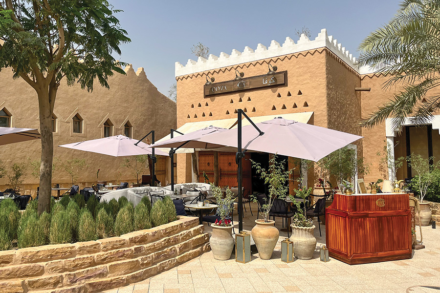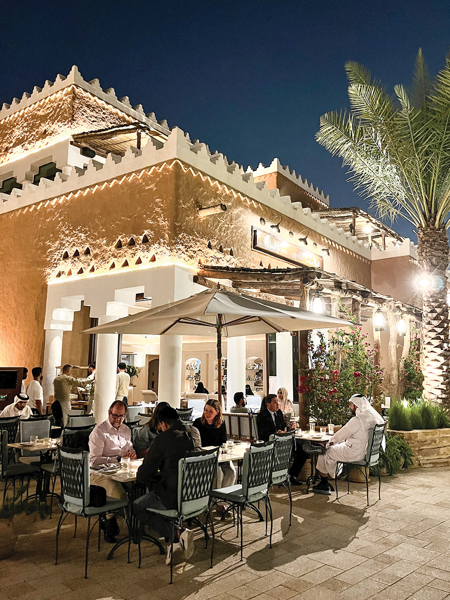 Aside from the international brand line up, the styling of the precinct has created a yardstick for authentic experience on the Arabian Peninsula. Sympathetic to the historic architecture and overlooking the jaw-dropping world heritage site of At-Turaif, the dining terraces provide the perfect location for customary late-night dining and socialising. As is the local way, lunch starts late in the afternoon, and dinner from 9pm or 10pm through to the early hours; social time makes full use of the cooler hours of the day.