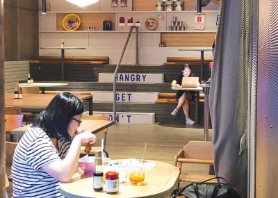 Remove the food court and re-distribute the offer Problem: The centre traffic can only sustain a six outlet food court so the calibre of operators is sub-standard and lacks appeal. Assignments are common and no one re-invests in their store because the average MAT is too low. Solution: Brookside, a sub-regional in Brisbane took a blow when Myer decided to exit. The owners and centre management team took the opportunity to re-consider what the trade area was lacking and were able to replace Myer with a Target. There was further opportunity to add a new mini major but there was no space, so the decision was made to backfill the food court of around 1,000m2 with the new mini major and create a new food ‘heart’ around the centre court comprising a mix of in line larger format casual dining shops complemented by several fast kiosk model food offerings. This effectively is making food a ‘hero’ precinct instead of a poor relation and aims to draw customers into the heart of the centre to increase dwell time. A really clever re-invention. Dare to break the valuation mould Problem: For many sub-regional centres, a fixed food court of only a handful of offers becomes incredibly boring for both customers and also the centre’s retail staff working population who are frequent users of the food court. Everyday it’s the same six or so unbranded outlets to pick from – very ho hum. Solution: We have been proposing this for many of our university clients so we were pleased to come across this model under a residential tower in Melbourne’s downtown.