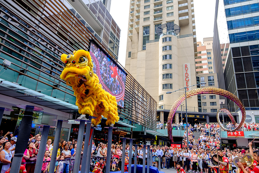 WORLD SQUARE, SYDNEY Every year, World Square puts on a spectacular show, and this year is no different as they celebrate the Year of the Pig with dancing pigs in augmented reality and traditional lion dance on poles from renowned Lion Dance troupe Jin Wu Koon Dragon & Lion Dance company. The centre is located near Chinatown and benefits from a light-rail stop right near its doorstep.