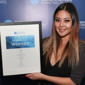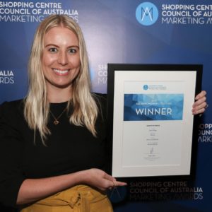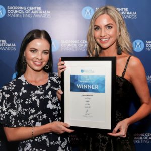 Campaign of the Year and winner of the Sabina Rust Memorial Prize went to GPT’s Highpoint Shopping Centre for its ‘Think West’ campaign. Highpoint’s marketing team worked with some 24 community partners to come together to facilitate the sharing of ideas, philosophy and culture with over 3,000 participants celebrating cultural diversity of Melbourne’s West. Scentre Group CEO and current Chairman of SCCA, Peter Allen, presented the award.