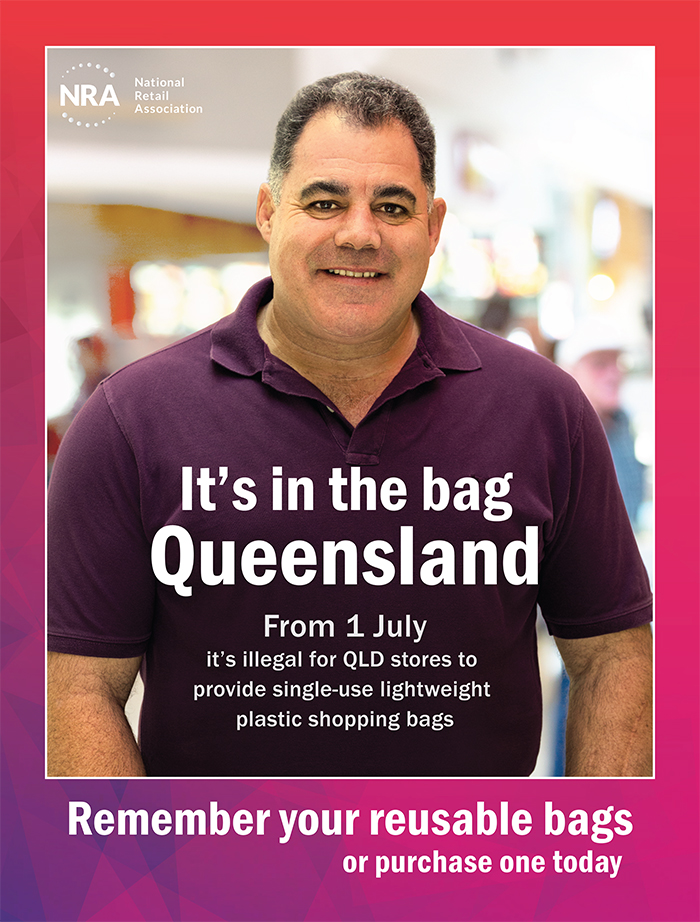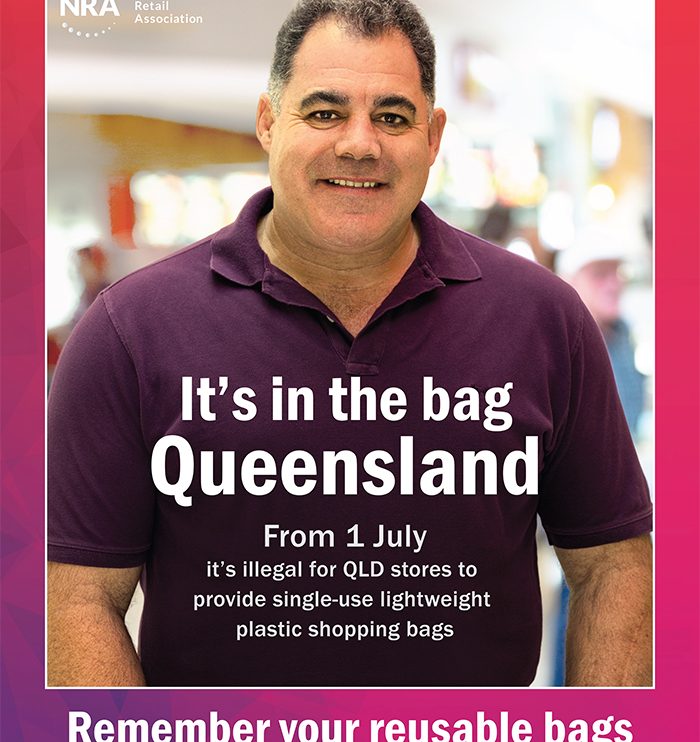 From the 1 July Qld will roll out a state-wide ban on plastic bags. Queensland great Mal Meninga has joined forces with the National Retail Association (NRA) to launch a state-wide campaign calling on consumers to get behind the Queensland Government’s July 1 ban on single-use lightweight plastic shopping bags.
